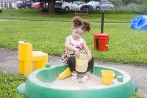 Jeniffer Rivera playing in the sandbox early last summer after attending school. Photo by Joel Weisbrod.